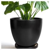 8 Inch Plant Pot - Ceraimc Planter for Indoor Outdoor Plants, Round Flower Pots with Drainage and Tray, House Decor, Black