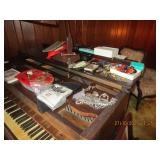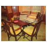 PARTIAL LISTING: 1890’S CLAW FOOT MAHOGANY OAK GLASS CHINA CABINET WITH MIRROR BACK FULL CARVED COLUMNS AND CLAW FEET, 1890’S CLAW FOOT SOLID MAHOGANY ROUND TABLE WITH FOUR LEAVES, 1890’S 8 SOLID MAHOGANY CLAW FOOT SPLASH BACK DINING ROOM CHAIRS, 4 DRAWER CRAFTIQUE CHEST, 1880’S WHITE MARBLE TOP CENTER TABLE, KINDEL FURNITURE TALL CHEST, KINDEL FURNITURE NIGHT STAND, KINDEL FURNITURE DRESSER WITH MIRROR, 1900’S FULL SIZE PINEAPPLE BED, 1940’S WINDSOR ROCKER, HEPPLEWHITE CABINET WITH SEWING MACHINE , 3 PIECE MODERN BEDROOM SUITE, 1940’S GOOSENECK STYLE ROCKER, PRO-FORM PERSONAL TRAINER TREADMILL, PRICE ELECTRIC TRAVEL SCOOTER, KNEEHOLE DESK, LAMPS, ELECTRONIC EQUIPMENT, CONOVER BABY GRAND PIANO, 1900’S MUSIC STAND, ANTIQUE LINENS, OLD DOLLS, GOOSENECK SOFA, LARGE GOLD LEAF MIRROR, OLD MUSIC SHEETS, STERLING SILVER, CRYSTAL, LARGE OLD ROYAL DOULTON BOWL, NIPPON VASE, OLD CLOCKS, 3 PIECE VINTAGE LEATHER SOFA SET, CHRISTMAS ITEMS, FENTON, TOOLS, 6 BEAUTIFUL BLACK LACQUER WINDSOR CHAIRS, 3 PIECE HEAVY WICKER TABLE SET, PAIR OF WICKER LAMPS, KITCHENWARE, GARAGE FULL, VINTAGE METAL CABINETS WITH DRAWERS, CAST IRON WELL PUMP AND MUCH MORE!!