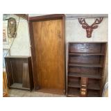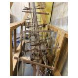 FURNITURE* Brown Leather Reclining Sofa and matching Recliner, Nice Hall Tree, Wood Porch Rocker, Antique Metal Bed, Wood Bed, Nice Iron Bed, Wardrobe w/Beveled Mirror, Fabric Sofa, Round Pedestal Wood Table, set of 4 Wood Chairs, Rattan Glass top End Table, Wicker Chair, set of 4 Star Back Aluminum Patio Chairs, 2 Wood Folding Tables, 2 Metal Folding Chairs, Canvas Lawn Chairs, Baby Playpen, 3 Assorted Wood Shelves, Office Chair, Vintage Chrome Leg Roaster Stand, Oak Fern Pedestal, Fish Shape Table, and more!