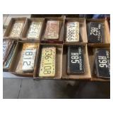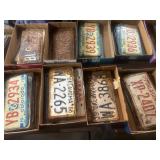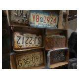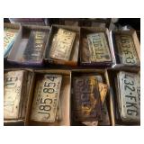 COLLECTIBLES* 300 Vintage License Plates, 300 Record Albums (33’s), Several Single Records (45’s), Atlas Globe, Texas Belt Buckle, De Mott Brass Ship on Marble Base, New Poker Chips & Decks of Cards, and More