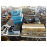 TOOLS* Central Pneumatic Air Compressors w/Hoses & Accessories, Eastwood Tig 200 Argon Welder, Eastwood MP200 Argon Welder, 2 Argon Tanks, Small Acetylene Tank, Small Oxygen Tank, Cutting Torch set, Welding Stand, Welding Magnets, Delta Bench Grinder on Heavy Stand, Craftsman 8 In. Drill Press on Heavy Stand, Milwaukee Band Saw on Stand, Central Machinery Hydraulic Press, Pittsburg Motor Lift, 4 Assorted Rolling Metal Large Toolboxes, 4 Metal File Cabinets, Rolling Tool Caddie, Wood Tool Caddie, Band Sander, Miter Saw, Tile Saw, Large Metal Shelf w/Wire Shelves, Shop Fox Metal Cutting Band Saw, Assorted Air Tools, Fluke Camera, Paint Gun, Porter Cable Air Nailer and Staple Guns, Sander, Edger, Box Wrenches, Socket Sets, Torque Wrench, Screwdrivers, Pliers, Vise Grips, Allen Wrenches, Files and Rasps, Tape Measures, Box Cutters, Tape, Micrometers, Tape N Die sets, AC Vacuum Pump, 9 Trailer Bar Load Locks, 10 Foot Tow Chain, Pair of Car Floor Rollers, Assorted Scrap Metal & Pipes, Rail Road Iron Rail sections, Come a Long, Chain Hoist, Bolt Cutter, Sledge Hammer, Leaf Rake, Shovel, Shop Chair, Pulley Pullers, Drying Blowers, Shop Vac, Porter Cable Reciprocating Saw, Bolts, Screws, and assorted Hardware, Vintage Bolt Bins, 2 Large Solar Panels (in Boxes), Large Welding Extension Cords, Copper Tubing, Timing Guns, New Pair of Folding Lawn Mower Ramps, 4Ton Portable Hydraulic Equipment Kit, Craftsman Self-Propel Lawn Mower, and More!