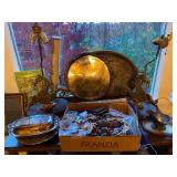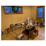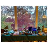 -Abstract Sculpture w/Pedestal -(2) Solid Bronze Richard MacDonald Sculptures Including 19″ Rain II w/COA & 11″ Jacques Atelier (Both From The Mime Series) -Large In Flight Dove Sculpture -Very Heavy Concrete Buddhist Bust Sculpture w/Pedestal -Framed Artwork Including Antique, Vintage, Oriental, Currier & Ives, Mid Century & Modern – Most Signed/Numbered Antique 19th Century (3) Drawer Chest w/Original Hardware – Mint Condition, Antique Oak Mantle w/Original Finish, Antique Chinese Heavily Carved Camphor Wood Chest, Queen Sleigh Bed, Many Wood Bookcases, Jewelry Armoire, Vintage Game Table, Platform Rocking Chair, Upholstered Red Satin Arm Chair, White Drop End Kitchen Table, Tall Wood Pantry Cupboard w/Door, Glass Top TV/Audio Stand, Round Glass Top Dinette Table, Vintage Wood Snack & Accent Tables (Two Marble Top), Huge Vintage Copper Apple Butter Kettle, (2) Large Brass Pails, Brass Fireplace Fender, Fan, Andirons & Fireplace Tools, Many Wall Mirrors – Some Fancy, Vintage Tall Lucite Light Up Art Pedestal, White Wicker Hamper, Table & Floor Lamps Including Pair Of Brass Horse Table Lamps, (4) White Kitchen Chairs w/Rush Seats, (5) Dining Room Chairs w/Needlepoint Seats, Pair Steel Blue Crushed Velvet Dining Room Chairs, Wood Magazine Stand, Pair Antique Wall Hanging Wood Carvings, Many Pieces Monkey/Pod Wood Cat Figurine & Serving Pieces, Antique Bedwarmer, Many Pieces Hand Painted China, Bowls & Plates, Very Large Art Glass Shell Serving Bowl, Orrefors Crystal, Blue & White China Decorative Accent Pieces, Brass Wine Goblets In Original Box, Silver Plate Including Large Vintage Serving Platters, Small Set Royal Copenhagen China, Vintage Rose Medallion China – Most As Is, (2) Sets English China Dinnerware, EAPG Glass, Stemware, 1800’s Pewter Tea Pot, Primary Color Pyrex Nesting Bowls, Assorted Glassware, Small Appliances – Some In Original Boxes, Pots & Pans, Bakeware, Mid Century Flatware, Tons Of Costume Jewelry – Some Vintage, Ladies Clothing (M-L) & Purses, Spritzes & Sprays, Tons Health & Beauty, Many Bottles Of Essential Oils, Linens Including Handmade Afghans & Handmade Quilt, Electronics Including New Nook, Flat Screen TV, Printer – NIB, etc., CD’s, Paper Ephemera, Antique Oriental Scrolls, Large Assortment Of Books Including Collectible & Vintage, File Cabinets, Tons Office Supplies, Royal Microcut Shredder NIB, Lazer Printer NIB, Board Games, White Child’s Wood Table w/2 Chairs, Christmas Including Antique Tree Holder & Tin Ornaments, Aluminum Step & Extension Ladders & Much More |