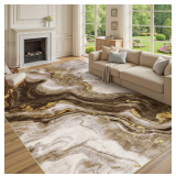 Qeetex 10 x 13 ft Polyester Imitation Cashmere Brown Rectangular Hallway Bathroom Entryway Kitchen Office Foldable Geometric Printed Modern Washable Area Rug