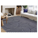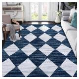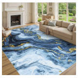 Garvee Large Area Rugs 9x12 Non-Slip Modern Abstract Indoor Carpet Mat, Non-Shedding Neutral Living Room Rugs, Stain-Resistant Low Pile Floor Cover for Bedroom, Kitchen, Blue