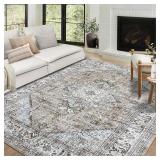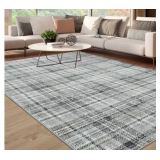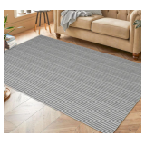 Garvee Modern Grey 8x10 Rug for Living Room, Boho Striped Print Washable Area Rug for Bedroom Soft Ultra Thin Indoor Floor Carpet, Modern Non-Slip Large Area Rugs for Dining Room