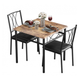 Garvee Dining Table Set for 2 with Cushioned Chairs, Space-Saving, Sturdy MDF & Steel, Easy Assembly, Rustic Brown, Ideal for Apartments
