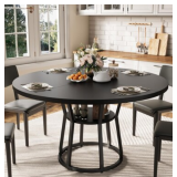 Qeetex 47 Inch Round Dining Table for 4 Space Saving with Storage and Metal Legs Black