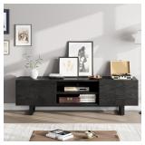 Modern TV Stand for 65/75/80 Inch TV, Black 70" Entertainment Center with 2 Drawers & Open Shelves, Heavy Duty Wooden Media Console Cabinet with Metal Legs for Living Room Bedroom