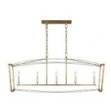 (157). Generation Lighting Thayer 5-Light Antique Gild Transitional Linear Hanging Island Chandelier