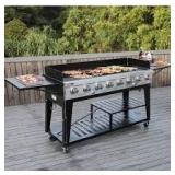 (217). Royal Gourmet 8-Burner Event Propane Gas Grill with 2 Folding Side Tables in Black