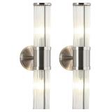 OOSENLUX Bathroom Sconces Set of 2 Brushed Nickel Wall Sconce Light Fixtures with E12 Base and Glass Rod Design – Modern Vanity Light Fixture for Bathroom, Powder Room, Bedroom, Hallway