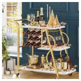 MSRP $149.99 【Versatile Gold Bar Cart】Elevate your entertaining experience with this multifunctional liquor cart for the home. Boasting 3 tiers storage shelves of varying sizes, a stemware rack capable of accommodating up to 9 glasses, and a wine rack that holds 8 bottles, this rolling serving cart combines both aesthetic appeal and practical functionality. Perfect for placement in dining room, kitchen, living room or outdoor spaces when hosting BBQ or party. This Item is NEW! No Refunds After the Item Has Left the Building. Please Come to Preview! MSRP: $149.99