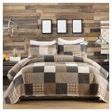 100% Cotton King Brown Quilt Set - Farmhouse Plaid Bedspread King Size, Soft and Lightweight Rustic Bedding Set,Comforter for All Seasons, Country... Color:Brown/Black