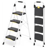 Urackify 4 Step Ladder, Folding Steel Step Stool with Safety Lock, Anti-Slip Wide Pedals, Pass 800lbs Load Testing, Handrail, Heavy Duty Portable Ladder BLACK