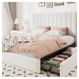 LIKIMIKO KING Bed Frame, Storage Headboard with Charging Station, Solid and Stable, Noise Free, No Box Spring Needed, Easy Assembly