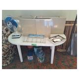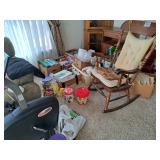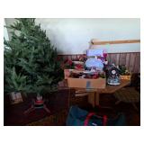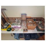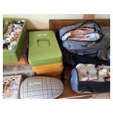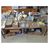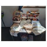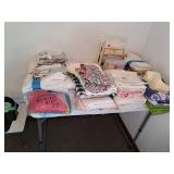 Items for sale include: housewares, glassware including wine glasses-relish trays-platters; bedding (sheets, blankets, comforters, mattress pads); holiday decorations including a lighted tree; sewing-embroidery-plastic canvas items; other craft items, boxes of material; yarn, lace, zippers and miscellaneous sewing items; durable medical equipment (including a stair chair lift set up currently for 14 steps, walkers etc); tools & hardware; televisions; small amounts of costume jewelry; canning jars (some vintage); furniture including dining table, table chairs, buffet, high-top table with 4 chairs, dressers with and without mirrors; bed/frame (no mattresses); couch and matching chair; table cloths (including material, plastic, and holiday themed); bathroom towels; suitcases (some vintage); old handmade doll bed; child sized table with 2 plastic chairs; various stands for plants/TV/etc.; garden and lawn items; miscellaneous knick-knacks; clocks and LOTS of other miscellaneous items.