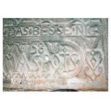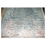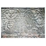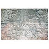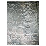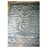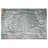 Early 1758 Cast Iron Furnace Stove Plate 11.5" x 11.5" w/ Elaborate Decoration Embossed w/ Tulip & Hearts "Das Besseng 1758 Homaspots"