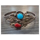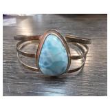 Sterling Silver Cuff Bracelet with Pink Stone |