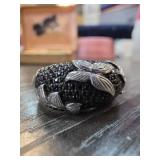 Sterling Silver Sz 7.5-8 Ring with Black Stones |