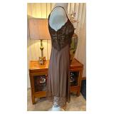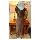 Vanity Fair Brown Lace Bodice & Hem NOS Slip Old Hollywood Glam! Hollywood Vassarette by Munsingwear Black Slip Embroidered Bodice Trim Vintage 1950's - 60's Lace Bustier with Garter Loops ~ Charmode by Sears & Roebuck