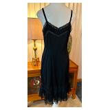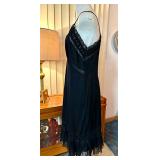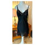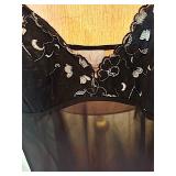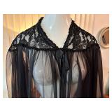 Charmode Art Deco Pleated Fancy Black Lingerie Slip Full Length 1960's Black Lingerie Lace & Sheer Nightgown Robe Gorgeous Vintage Fanity Fair Lace & Pleated Nylon Slip Great gift for something old for the bride who appreciates vintage!
