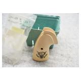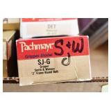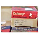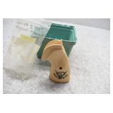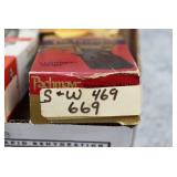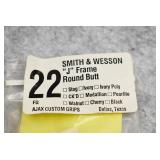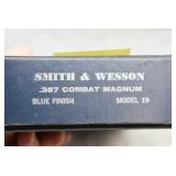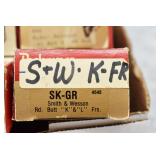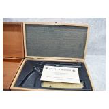 171R. Scarce! Smith & Wesson – Mod. 18 K-22 Combat Masterpiece Double Action Revolver – Modified to Shoot the Harvey .224 KAY-CHUK Cartridge – Serial Number K357163 – Gun is Fitted With a 4” Barrel w/Ramp Front Sight & Adj. Rear Sights – Gun Has a Blued Finish – Gun is Stocked w/Factory Diamond Checkered Walnut Grips w/S&W Medallions – w/Factory 2pc. Box, Manual & Wax Paper – The Harvey .224 KAY-CHUK Cartridge Was Developed by Jim Harvey in the Mid 1950’s – Limited Research Shows That Jim Harvey Made Around 30 of These Guns (Model 17’s, 18’s, 48’s, Etc) Before Selling the Rights to Bennett Gun Works in Delmar, New York Who in Turn Converted Approx. 300 Guns Between 1956-1959. Most Guns Were 6” Barrels, but 4” Guns Have Been Observed. This Gun Would Make a Great Addition to Any Smith & Wesson Collection!