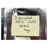 59R. Springfield – Mod. 1911-A1 – 45 Auto Cal. Semi-Auto Pistol – w/5” Barrel w/3-Dot Blade Front & Adj. Rear Notch Sights – Stainless Finish – w/Factory Checkered Wood Grips – w/2 Detachable Magazines – As New w/Hard Case, Holsters, Manuals & Accessories