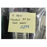 184R. Taurus – Mod. 17 Tracker – 17 HMR Cal. Double Action Revolver – w/6 ½” Vent-Rib Barrel w/Ramp Blade Front & Adj. Rear Notch Sights – Matte Stainless Finish – w/Factory Black Rubber Grips – New w/Factory Box & Accessories