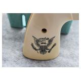 185R. U.S.F.A. Mfg. – Mod. Single Action Army – 45 Colt Cal. Single Action Revolver – w/4 ¾” Barrel w/Blade Front & Notch Rear Factory Sights – Satin Stainless Finish – w/Stag Like Grips – New w/Factory Box