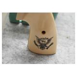 51R. Colt – Mod. 22 Pistol – 22LR Cal. Semi-Auto Pistol – w/4 ½” Heavy Target, Vent-Rib Barrel w/Ramp Blade Front & Adj. Rear Notch Sights – Satin Stainless Finish – w/Checkered Black Plastic Grips & Trigger Guard – w/2 Factory Detachable Magazines – New w/Manual & Hard Case