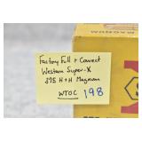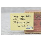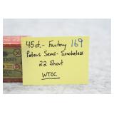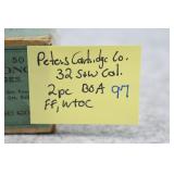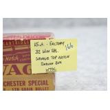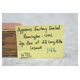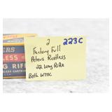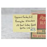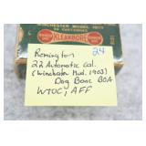Click Here and Read This Before Bidding!Online Sales Terms and Conditions. Buyers must read and UNDERSTAND ALL terms and conditions before bidding. When you register for the sale, you agree to all terms and conditions. You as the bidder/buyer are responsible for making your own opinion to determine condition, age, genuineness, value or any other determinative factor. Redding Auction Service makes no representations, certifications or guarantees. Yes, there is a buyer’s premium for all online purchases. (If you’re bidding by clicking a button you will be charged a buyers’ premium). If you are bidding live in house, absentee bidding or phone bidding there is NO BUYERS PREMIUM. All items are sold as is! There are absolutely no refunds! Do not bid if you do not intend to pay for all lots won. Shipping is an additional charge and can take up to 14 BUSINESS DAYS after the date of payment. We do not intend to make money on shipping, nor do we intend to lose money on shipping. TECHNICAL ISSUES: In the event there are technical difficulties related to the server, software, internet. your personal device or any other online auction-related technologies, Redding Auction Service Inc. reserve the right to extend the bidding, reopen the bidding, or close the bidding. Neither the company providing the software, nor Redding Auction Service Inc. shall be held responsible for a missed bid or the failure of the software, machinery, et. al. to function properly for any reason. For a full listing of all our terms and conditions for this sale please review them under the auction details. Lot #11. Winchester – 75th Anniversary Boy Scouts of America 22LR Brick of Commemorative Ammo – WTOC1. Winchester – 75th Anniversary Boy Scouts of America 22LR Brick of Commemorative Ammo - WTOC Lot #22. Peter – Rustless 35 Win. Self-Loading BOA – FF2. Peter – Rustless 35 Win. Self-Loading BOA – FF Lot #33. Remington – Kleanbore Express 303 Savage BOA – FF3. Remington – Kleanbore Express 303 Savage BOA – FF Lot #44. Remington – Kleanbore Hi-Speed 22 Savage BOA – FF4. Remington – Kleanbore Hi-Speed 22 Savage BOA – FF Lot #55. Winchester – 38 Winchester (38-40) 180gr. Soft Point BOA – 2pc. Box – FF & Correct5. Winchester – 38 Winchester (38-40) 180gr. Soft Point BOA – 2pc. Box – FF & Correct Lot #66. 2 Winchester – Super-Speed Silvertip 348 Win. BOA – FF6. 2 Winchester – Super-Speed Silvertip 348 Win. BOA – FF Lot #77. Remington – Kleanbore Hi-Speed 219 Zipper BOA – FF7. Remington – Kleanbore Hi-Speed 219 Zipper BOA – FF Lot #88. Winchester – Commemorative Ammunition for Browning Model 71 348 Win. BOA – FF8. Winchester – Commemorative Ammunition for Browning Model 71 348 Win. BOA – FF Lot #99. 45ct. Factory Fiocchi 9mm Flobert9. 45ct. Factory Fiocchi 9mm Flobert Lot #1010. Winchester Limited Edition 250ct. Brick of 22 WRF – FF10. Winchester Limited Edition 250ct. Brick of 22 WRF – FF Lot #1111. Winchester – 1986 Limited Edition 250ct. Brick of 22 WRF – FF11. Winchester – 1986 Limited Edition 250ct. Brick of 22 WRF – FF Lot #1212. 2 Remington – 303 Savage 180gr. Soft Point Core-Lokt BOA – FF12. 2 Remington – 303 Savage 180gr. Soft Point Core-Lokt BOA – FF Lot #1313. Mixed Western Headstamp 270 Win Standing Bear Box – Full13. Mixed Western Headstamp 270 Win Standing Bear Box – Full Lot #1414. Remington – Kleanbore Express 348 Win. BOA – FF14. Remington – Kleanbore Express 348 Win. BOA – FF Lot #1515. Savage – Indian Box 30-30 Win. BOA – FF15. Savage – Indian Box 30-30 Win. BOA – FF Lot #1616. Savage – Indian Box 222 Rem. BOA – FF16. Savage – Indian Box 222 Rem. BOA – FF Lot #1717. Savage – Top Notch Indian Box – 30-30 Win. BOA – FF17. Savage – Top Notch Indian Box – 30-30 Win. BOA – FF Lot #1818. 45 Rounds 41 Short Rimfire18. 45 Rounds 41 Short Rimfire Lot #1919. 3 Winchester Super-X Silver Tip 348 Win. BOA – FF19. 3 Winchester Super-X Silver Tip 348 Win. BOA – FF Lot #2020. Winchester – John Wayne Commemorative 32-40 BOA – FF20. Winchester – John Wayne Commemorative 32-40 BOA – FF Lot #2121. Winchester – 76 Bicentennial Commemorative 30-30 Win. BOA – FF21. Winchester – 76 Bicentennial Commemorative 30-30 Win. BOA – FF Lot #2222. 48ct. Factory Fiocchi 9mm Long Shot Rim Fire22. 48ct. Factory Fiocchi 9mm Long Shot Rim Fire Lot #2323. Remington – “Palma” 22lR Cal. BOA – AFF – WTOC23. Remington – “Palma” 22lR Cal. BOA – AFF – WTOC Lot #2424. Remington – 22 Automatic Cal. (Winchester Mod. 1903) Dog Bone BOA – AFF – WTOC24. Remington – 22 Automatic Cal. (Winchester Mod. 1903) Dog Bone BOA – AFF – WTOC Lot #2525. 2 Remington – 22 Win. Automatic Cal. BOA – FF25. 2 Remington – 22 Win. Automatic Cal. BOA – FF Lot #2626. 2 Remington – 22 Win. Automatic Cal. BOA – FF26. 2 Remington – 22 Win. Automatic Cal. BOA – FF Lot #2727. 2 Remington – 22 WRF (22 Rem. Spl.) – FF27. 2 Remington – 22 WRF (22 Rem. Spl.) – FF Lot #2828. 3 Winchester – Super Speed 22 Long Rifle Cal. BOA – AFF – WTOC28. 3 Winchester – Super Speed 22 Long Rifle Cal. BOA – AFF – WTOC Lot #2929. 2 Remington – 22LR Cal. “Dog Bone” BOA – AFF – WTOC29. 2 Remington – 22LR Cal. “Dog Bone” BOA – AFF – WTOC Lot #3030. Winchester – 2pc. BOA of 32 Long Rim-Fire Cal. Ammo – FF30. Winchester – 2pc. BOA of 32 Long Rim-Fire Cal. Ammo – FF Lot #3131. 2 Remington – High Velocity 22 WRF BOA – FF31. 2 Remington – High Velocity 22 WRF BOA – FF Lot #3232. 2 Western – Super-X 22 WRF Cal. BOA – FF32. 2 Western – Super-X 22 WRF Cal. BOA – FF Lot #3333. Western – 2pc. BOA of 32-20 Ammo – FF33. Western – 2pc. BOA of 32-20 Ammo – FF Lot #3434. Remington – 2pc. BOA of 32 S&W Long Cal. – Box Label is Mostly Still Sealed – AFF34. Remington – 2pc. BOA of 32 S&W Long Cal. – Box Label is Mostly Still Sealed – AFF Lot #3535. Lot of 