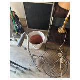 Contents of home including sectional, pottery, mirrors, lamps, bedroom sets, art, pottery, desks, wine racks, exercise bikes, televisions, drum kit, garden tools, light weights, dishes and more! |