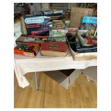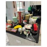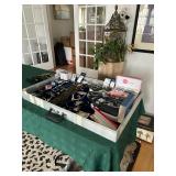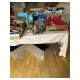 Travertine pedestal & glass top console, leather sectional, mirrored screen, animal print rugs, stacked books glass top end tables, clocks, mirrors, floor lamps, armoire, bedroom furniture, mica MBR set, fireplace, 2 seater bench, Asian chest, lots of decorative accent pieces, spray lamp, desks, wall art, Lionel trains, Nintendo Action Set, telescope costume jewelry, sunglasses, furs, clothes, vintage bags, dolls, violin, folding chairs, AMP, vintage cameras, Santa & Snowman blow molds, garage items, ladders, tools, outdoor statuary, plants & trees & lots more! Just added to sale. Lots of Pokemon cards!! |