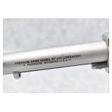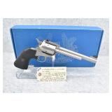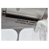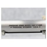 203R. Freedom Arms – Mod. 1997 – 17 HMR Cal. Single Action Revolver – w/7½” Barrel w/Ramp Blade Front and Adjustable Rear Notch Sights – Stainless Finish – w/Factory Smooth Wood Grips – w/Factory Box