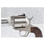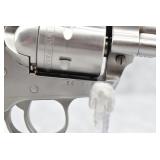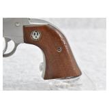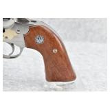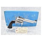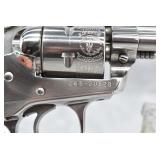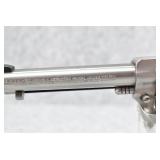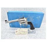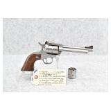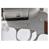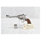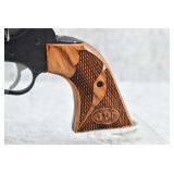 281R. Ruger – New Model Single Six – 22 Mag/22LR Cal. Dual Cylinder Combo Single Action Revolver – w/5.75” Barrel w/Front Blade & Rear Adj. Sight – Stainless Finish – w/Factory Wood Grips w/Silver Eagle Ruger Emblem – w/22LR Stainless Cylinder – Mfg. 1979