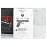 209R. Ruger – Mod. 57 – 5.7x28mm Cal. Semi-Auto Pistol – w/5” Barrel w/Fiber Optic Blade Front and Adjustable Rear Notch Sights – Blued Finish – w/Ruger Black Polymer Frame and Grips – Unfired w/Factory Hard Case, Manual, Accessories, and 2 Factory Detachable Magazines