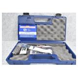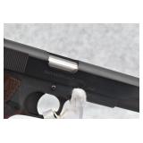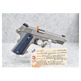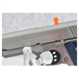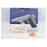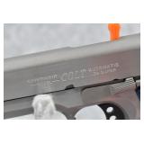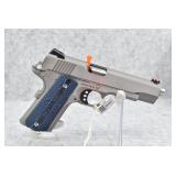 210R. Colt – Mod. Government Model Competition Series (01073CCS) – 38 Super Cal. Semi-Auto Pistol – w/5” National Match Barrel w/Fiber Optic Blade Front and Adjustable Rear Notch Sights – Stainless Finish – w/Factory Colt Black and Blue Laminated Checkered Grips – Unfired w/Factory Colt Hard Case, Manual, Accessories, and 1 Factory Detachable Magazine