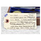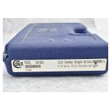 211R. Colt – Mod. Colt Cowboy – 45 Colt Cal. Single Action Revolver – w/5½” Barrel w/Blade Front and Rear Notch Sights – Blued Finish w/Case Hardened Frame – w/Factory Checkered Black Plastic Grips – Unfired w/Factory Hard Case