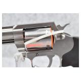 201R. Freedom Arms – Mod. 555 – 50 AE Cal. Single Action Revolver – w/5½” Barrel w/Ramp Blade Front and Adjustable Rear Notch Sights – Satin Stainless Finish – w/Pachmayr Checkered Molded Black Rubber Grips – w/Factory Box and Manuals