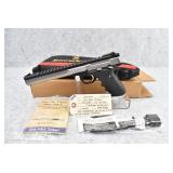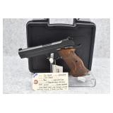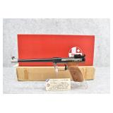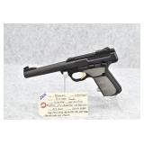 647R. Ruger – Mod. Mark I Target – 22LR Cal. Semi-Auto Pistol – w/5 ½” Heavy Target Barrel w/Front Barrel Weights – Blued Finish – w/Checkered Target Wood Grips w/Thumbrest – w/Detachable Magazine