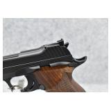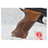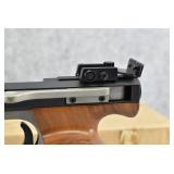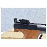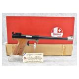 224R. Hammerli – Mod. 120 – 22LR Cal. Single Shot Target Pistol – w/10” Barrel w/Blade Front & Adj. Rear Target Notch Sights – Blued/Gray Two-Tone Finish – w/Textured Wood Target Grips – w/Factory Box, Accessories & Shipping Sleeve