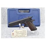 216R. Colt – Mod. Government Model (02991) – 38 Super Cal. Semi-Auto Pistol – w/5” Barrel w/3-Dot Blade Front and Adjustable Rear Notch Sights – Blued Finish – w/Factory Checkered Wood Grips – Unfired w/Factory Colt Hard Case, Manuals, Accessories, and 2 Factory Detachable Magazines