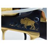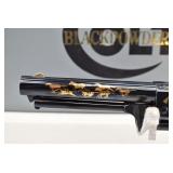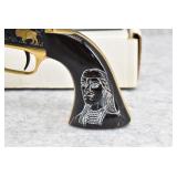 217. Colt – Mod. Dragoon Colt Black Powder Series “Cochise” Commemorative (F1760) – 44 Cal. Percussion Black Powder Revolver – w/7½” Barrel w/Blade Front and Rear Notch Sights – Blued Finish – w/Carved Buffalo Horn Grips w/Cochise in Grips – Gun is Embellished w/Scenes of Cochise – Only 500 Manufactured in this Special Colt Commemorative Edition – Unfired w/Box