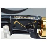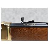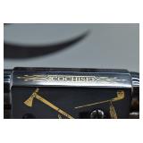 245R. Savage – Mod. 1895 – 75th Anniversary Commemorative – 308 Win. Cal. Lever Action Rifle – w/24” Tapered Octagon Barrel w/Blade Front & Adj. Rear Sights – Blued & Gold Finish – w/Straight Grip Wood Stocks w/75th Anniversary Medallion Inlaid on Right Side of Stock w/Gold Butt Plate & Lever