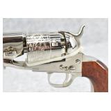 218. Colt – Mod. 1860 Army – “The Authentic Colt Black Powder Signature Series” – 44 Cal. Percussion Black Powder Revolver – w/8” Barrel w/Blade Front & Notch Rear Sights – Nickel Finish – w/Enhanced Cylinder w/Naval Ship Scenes – w/Smooth Wood Grips – New w/Factory Box & Manual – Nickel Finished 1860 Army’s Were Only Mfg. 1997-2002 in Limited Production