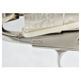 635R. H. & R. Mod. 950 – 22 Cal. Double Action Revolver – w/5 ½” Barrel w/Blade Front & Notch Rear Sights – Nickel Finish – w/Factory Wood Grips – As New w/Factory Box