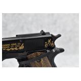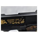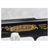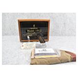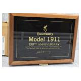 219R. Browning – Mod. 1911-22 – 100th Anniversary Commemorative – 22 Long Rifle Cal. Semi-Auto Pistol – w/4” Barrel w/Front & Rear Sights – Blued Finish – w/Factory Checkered Wood Grips – w/Factory Mag – Slide is Etched w/Anniversary Banners & Scrolling – w/Factory Soft Case, Manuals, Shipping Sleeve & Wooden Display Case, No Knife