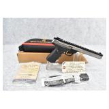 221R. Browning – Mod. Buckmark Pro-Target – 22 Long Rifle Cal. Semi-Auto Pistol – w/7” Barrel w/Blade Front & Adj. Rear Sights – Stainless Finish – w/Factory Rubber Grips – w/Factory Mag – New & Unfired w/Factory Soft Case, Manuals & Shipping Box