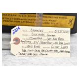 249R. Browning – Mod. B-SS – 12ga. 2 ¾” Hammerless Double Barrel Shotgun – w/26” Mod. & Full Choked Barrels w/Front Bead Sight – Excellent Blued Finish – w/Engraved Receiver – w/Checked Pistol Grip Wood Butt Stock w/Factory Butt Plate & Beavertail Forearm – w/Single Trigger – As New w/Box