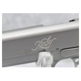 225R. Kimber – Stainless Target II (1911) – 45 ACP Cal. Semi-Auto Pistol – w/5” Barrel w/Fiber Optic Front & Adj. Rear Sights – Stainless Finish – w/Factory Checkered Wood Grips – w/Factory Mag – New & Unfired w/Factory Hard Case & Manual